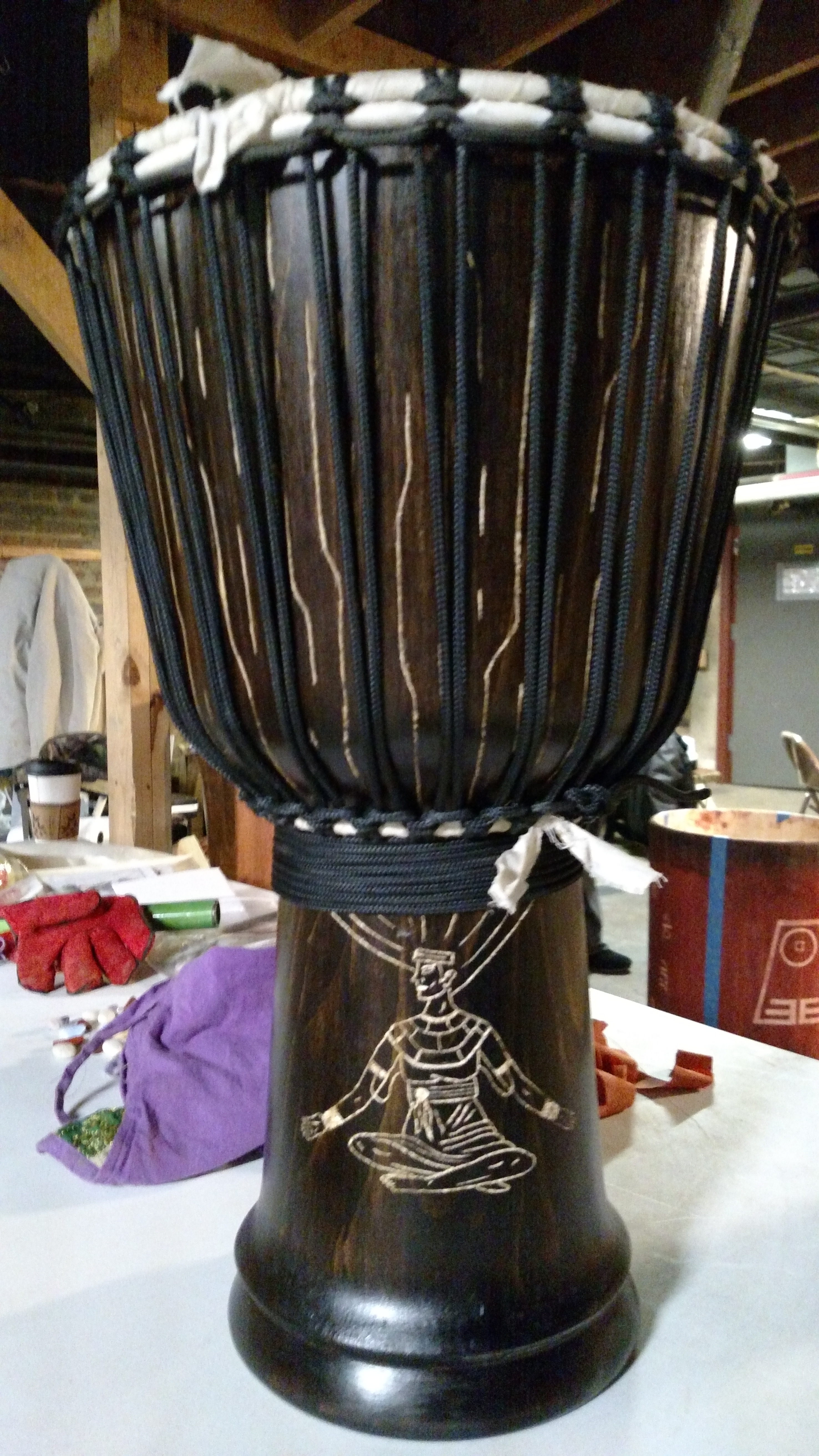 Finished The finished drum. Metal rings wrapped in fabric I recovered from an old hand-made shirt of mine. Finished drum